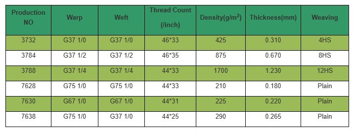 We can increase the strenath of20% according to customer strength performance of special reguirements. Filament fabric can be used for coaingdoth, coated PTFE, slicone, PVA, such as 1528,7757, can also be used in aviation equipment, such as 7581,7781, 1581; used in fire protection,protective cloth, such as 3784,3788 and other varieties.