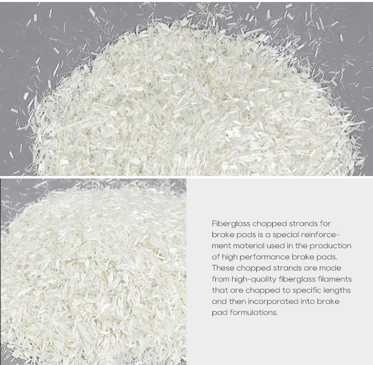 Fiberglass chopped strands for brake pads is a special reinforcement material used in the production of high performance brake pads. These chopped strands are made from high-quality fiberglass filaments that are chopped to specific lengths and then incorporated into brake pad formulations.