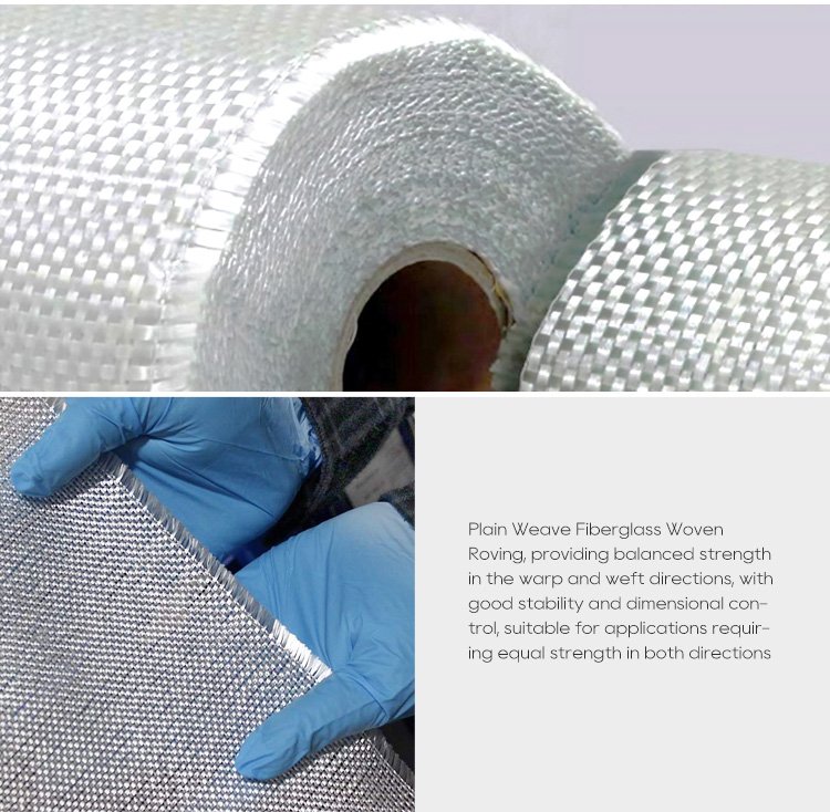 Plain Weave Fiberglass Woven Roving, providing balanced strength in the warp and weft directions, with good stability and dimensional control, suitable for applications requiring equal strength in both directions, such as general reinforcement, laminates and repairs.