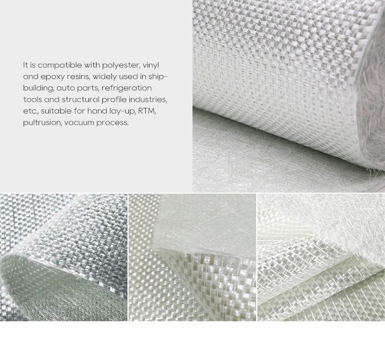 It is compatible with polyester, vinyl and epoxy resins, widely used in shipbuilding, auto parts, refrigeration tools and structural profile industries, etc., suitable for hand lay-up, RTM, pultrusion, vacuum process.