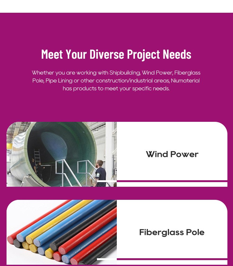 Whether you are working with Shipbuilding, Wind Power, Fiberglass Pole, Pipe Lining or other construction/industrial areas, Niumaterial has products to meet your specific needs.