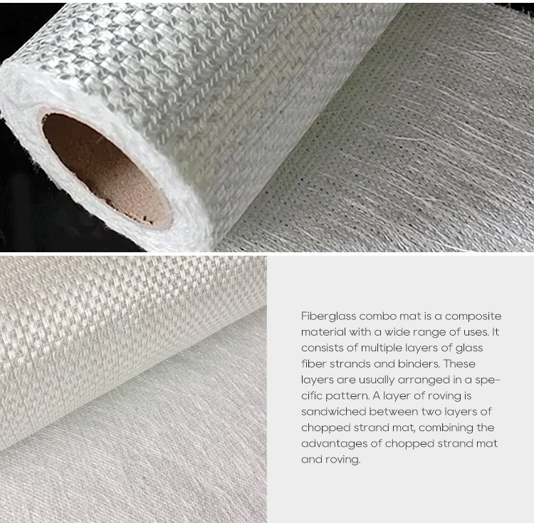 Fiberglass combo mat is a composite material with a wide range of uses. It consists of multiple layers of glass fiber strands and binders. These layers are usually arranged in a specific pattern. A layer of roving is sandwiched between two layers of chopped strand mat, combining the advantages of chopped strand mat and roving.