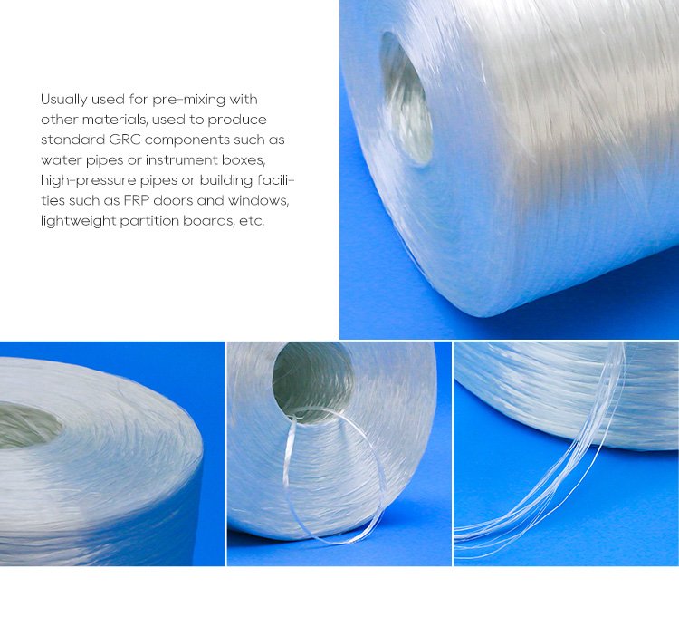Usually used for pre-mixing with other materials, used to produce standard GRC components such as water pipes or instrument boxes, high-pressure pipes or building facilities such as FRP doors and windows, lightweight partition boards, etc.