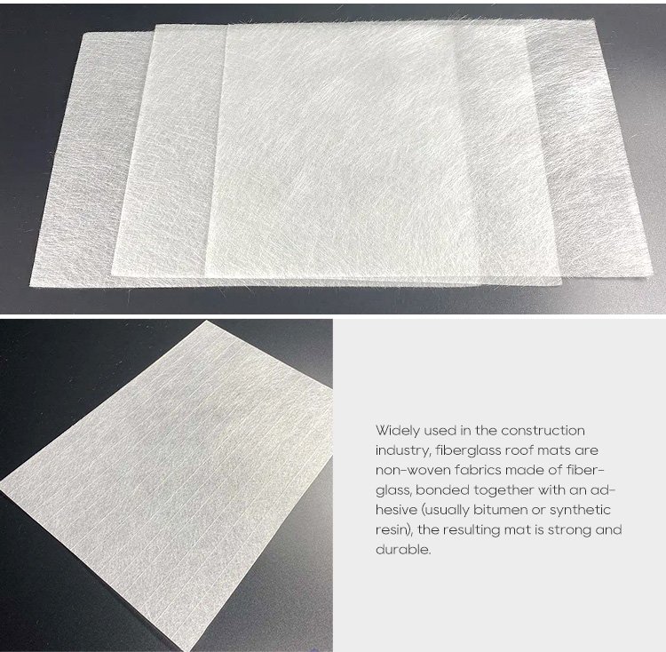 Widely used in the construction industry, fiberglass roof mats are non-woven fabrics made of fiberglass, bonded together with an adhesive (usually bitumen or synthetic resin), the resulting mat is strong and durable.